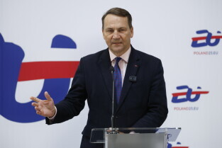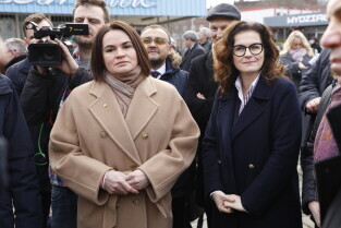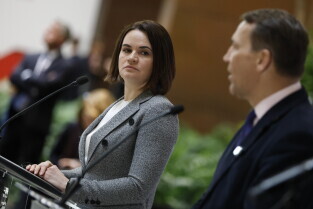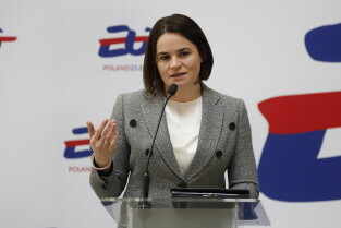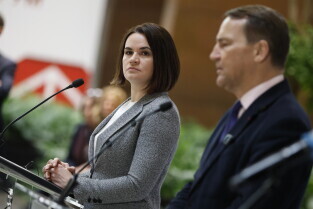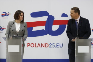 Gdańsk. Forum Kościuszkowskie. Nz. Konferencja prasowa: Radosław Sikorski - minister spraw zagranicznych, Swiatłana Cichanouska - białoruska aktywistka praw człowieka.