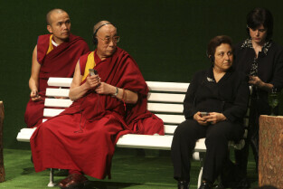 Forum Młodych w ramach obchodów 25-lecia otrzymania przez Lecha Wałęsę Pokojowej Nagrody Nobla. Nz. Dalajlama XIV, Shrin Ebadi (laureat Pokojowej Nagrody Nobla)