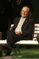 Forum Młodych w ramach obchodów 25-lecia otrzymania przez Lecha Wałęsę Pokojowej Nagrody Nobla. Nz. Adolfo Perez Esquivel (laureat Pokojowej Nagrody Nobla)