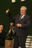 Forum Młodych w ramach obchodów 25-lecia otrzymania przez Lecha Wałęsę Pokojowej Nagrody Nobla. Nz. Lech Wałęsa (B. Prezydent RP)