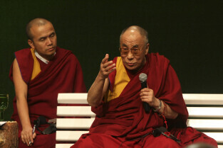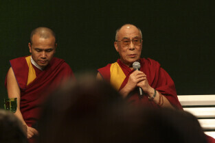 Forum Młodych w ramach obchodów 25-lecia otrzymania przez Lecha Wałęsę Pokojowej Nagrody Nobla. Nz. Dalajlama XIV