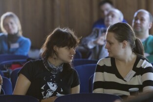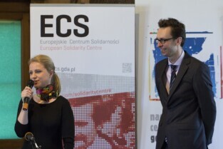 Forum "Razem na rzecz sprawiedliwej przyszłości" poświęcone praktykom z zakresu dialogu społecznego o różnorodności, równości i demokracji. Gdańsk, Nadbałtyckie Centrum Kultury. Nz. Dyrektor Instytutu Kultury Miejskiej w Gdańsku Aleksandra Szymańska i Z-ca Dyrektora ECS Jacek Kołtan