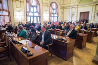 Gdańsk. Nowy Ratusz. Forum - Dyplomacja miast, konferencja miast partnerskich Województwa Pomorskiego i Białorusi