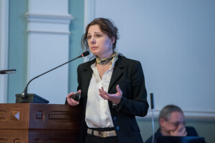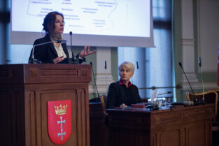 Gdańsk. Nowy Ratusz. Forum - Dyplomacja miast, konferencja miast partnerskich Województwa Pomorskiego i Białorusi. Nz. Karolina Wysocka - kierownik działu Współpracy z Zagranicą (Politechnika Gdańska)