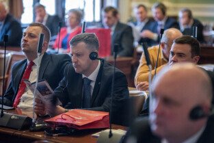 Gdańsk. Nowy Ratusz. Forum - Dyplomacja miast, konferencja miast partnerskich Województwa Pomorskiego i Białorusi. Nz. Marek Rasiński - zarząd Śląskiego Oddziału Stowarzyszenia Współpracy Polska-Wschód