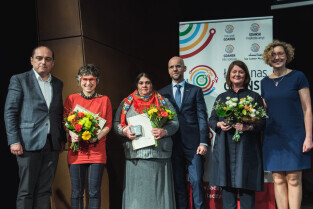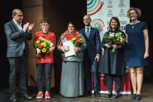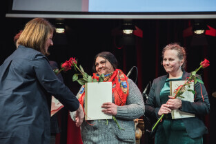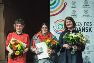 Gdańsk, ECS. GDAŃSKA NAGRODA RÓWNOŚCI im. Pawła Adamowicza. Nz. Elżbieta Rutkowska, Elisabeta Mîndra Căldărar, Patrycja Medowska