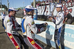 Finałowy mecz żużlowy Polskiej 2. Ligi Żużlowej. GKŻ Wybrzeże Gdańsk - Polonia Piła, zakończony zwycięstwem gdańskiej drużyny i ich awansem do pierwszej ligi. Nz. kapitan drużyny GKŻ Wybrzeże Magnus Zetterström