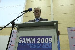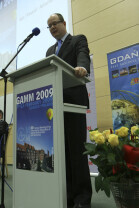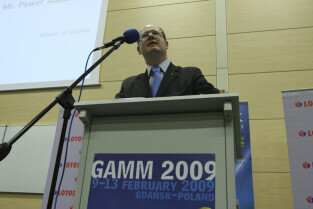 Konferencja naukowa GMM 2009. Gdańsk, Politechnika Gdańska, Budynek ETI. Nz. Prezydent Gdańska Paweł Adamowicz
