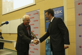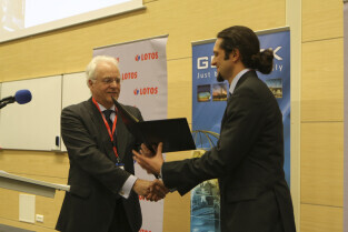 Konferencja naukowa GMM 2009. Gdańsk, Politechnika Gdańska, Budynek ETI. Nz. jedną z nagród otrzymuje: Dr. Daniel Balzani, University of Duisburg-Essen
