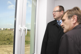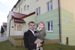 Oddanie do użytku budynków GTBS na Ujeścisku, dzielnicy Gdańska. Nz. Leszek Blanik z synem Arturem
