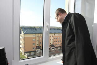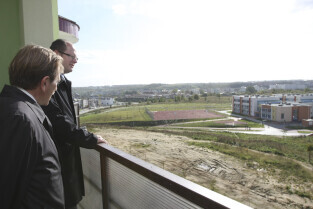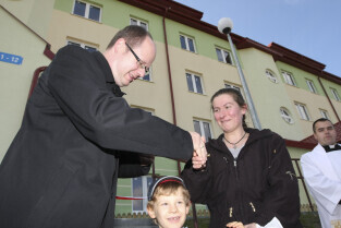 Oddanie do użytku budynków GTBS na Ujeścisku, dzielnicy Gdańska. Nz. Prezydent Gdańska Paweł Adamowicz