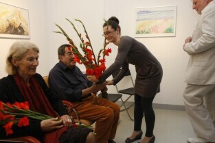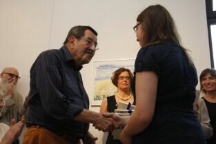 Günter Grass na otwarciu wystawy swoich akwareli w galerii jego imienia. Prace te stanowiły ilustracje do dwóch książek Güntera Grassa.