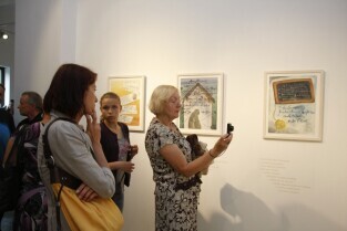 Günter Grass na otwarciu wystawy swoich akwareli w galerii jego imienia. Prace te stanowiły ilustracje do dwóch jego książek.