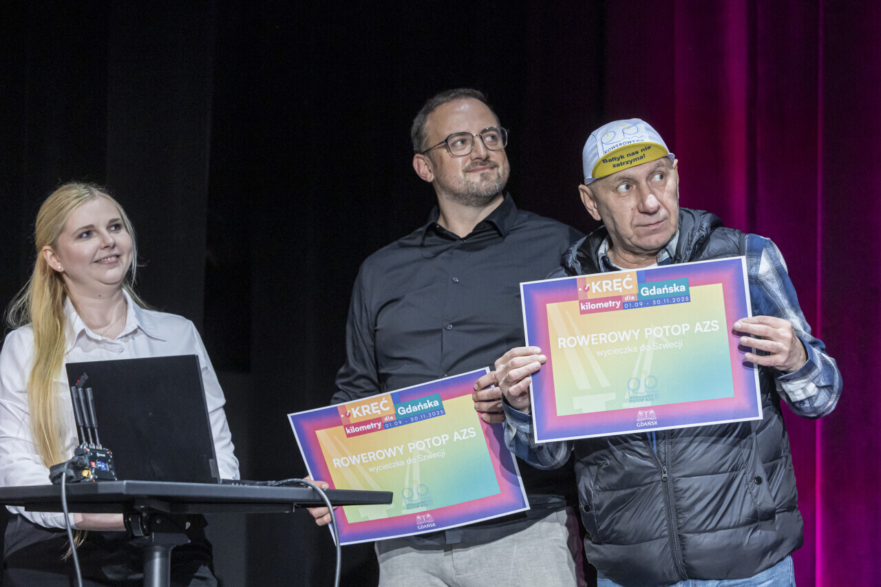 Gdańsk. Prezydent Aleksandra Dulkiewicz i jej zastępca Piotr Borawski wzięli udział w gali finałowej programu "Kręć Kilometry Dla Gdańska", która odbyła się w siedzibie Instytutu Kultury Miejskiej
