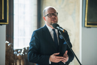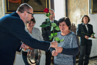 Gdańsk. Wielka Sala Wety Muzeum Gdańska. Gala Opiekun Roku. Najlepsze opiekunki i opiekunowie osób starszych i niepełnosprawnych w Gdańsku otrzymali nagrody i wyróżnienia za swoją pracę na rzecz potrzebujących. Nz. Prezydent Gdańska Paweł Adamowicz