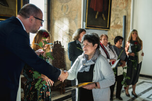 Gdańsk. Wielka Sala Wety Muzeum Gdańska. Gala Opiekun Roku. Najlepsze opiekunki i opiekunowie osób starszych i niepełnosprawnych w Gdańsku otrzymali nagrody i wyróżnienia za swoją pracę na rzecz potrzebujących