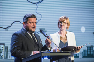 Gdańsk, ul. Elektryków. Gala Rozdania Nagród Smart Metropolia. Nz. Członek Zarządu Woj. Pomorskiego Piotr Orłowski i Anna Golędzinowska