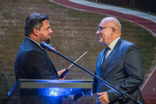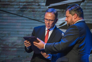 Gdańsk, ul. Elektryków. Gala Rozdania Nagród Smart Metropolia. Nz. Członek Zarządu Woj. Pomorskiego Piotr Orłowski i Piotr Wittbrodt, miasto Rumia