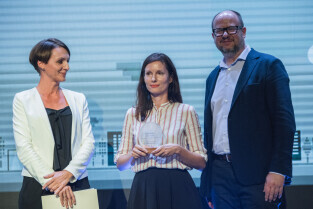 Gdańsk, ul. Elektryków. Gala Rozdania Nagród Smart Metropolia. Nz. Beata Rutkiewicz Zastępca Prezydenta Wejherowa, Marta Siciarek z Centrum Wsparcia Imigrantów i Imigrantek, Prezydent Gdańska Paweł Adamowicz