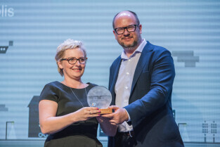 Gdańsk, ul. Elektryków. Gala Rozdania Nagród Smart Metropolia. Nz. Hanna Brejwo, wójt gminy Pszczółki