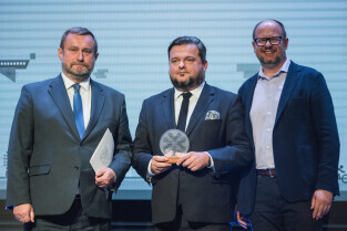 Gdańsk, ul. Elektryków. Gala Rozdania Nagród Smart Metropolia. Nz. Zbigniew Fularczyk, Maciej Kazienko - prezes WFOŚiGW, Sebastian Jędrzejewski, radny z Gdyni
