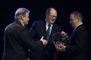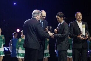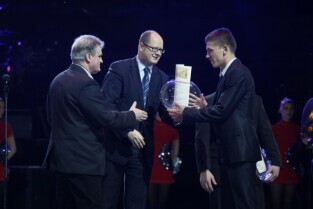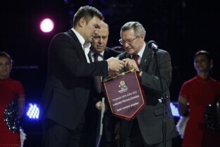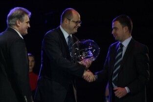 Gdańska Gala Sportu 2010. Ergo Arena na granicy Gdańska i Sopotu. Nz. tytuł "Przyjaciel EUFA EURO 2012" otrzymuje: Leszek Blanik