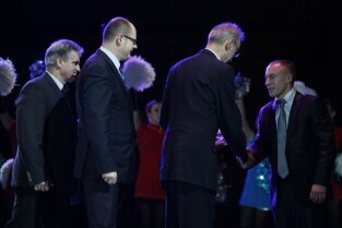 Gdańska Gala Sportu 2010. Ergo Arena na granicy Gdańska i Sopotu. Nz. uhonorowani tytułem "Przyjaciel EUFA EURO 2012", od lewej: Dariusz Michalczewski, Leszek Możdżer, Leszek Blanik