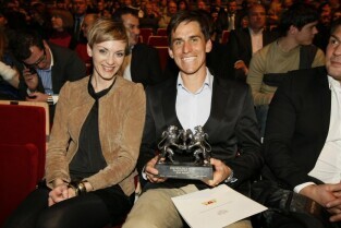 Gdańska Gala Sportu 2010. Ergo Arena na granicy Gdańska i Sopotu. Nz. "Sportowiec Roku 2010" Piotr Myszka z żoną Zuzanną