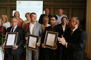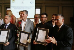 Gala finałowa regionalnego pomorskiego Konkursu Lodołamaczy 2012, podczas której nagrodzeni zostali pracodawcy zatrudniający osoby niepełnosprawne. Nz. Nagrodę Specjalną otrzymuje: Ks. Janusz Steć - Dyrektor Caritas Archidiecezji Gdańskiej