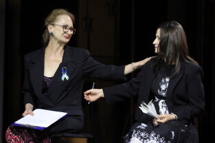 Gdańsk.Gala wręczenia Nagrody Literackiej Miasta Gdańska Europejski Poeta Wolności. Nz. Laureatki: Luljeta Lleshanaku i Marianna Kijanowska.