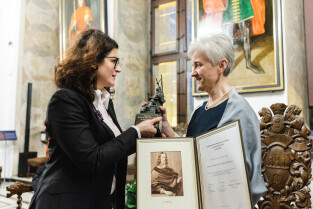 Gdańsk, Ratusz Głównego Miasta. Gala wręczenia Nagrody Naukowej im. Jana Heweliusza. Wyróżnienia za wybitne osiągnięcia naukowe odebrali: prof. dr hab. Hanna Mazur-Marzec oraz prof. dr hab. Artur Blaim