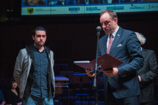 Gdańsk. Filharmonia Bałtycka ul. Ołowianka. Gala wręczenia Pomorskiej Nagrody Artystycznej 2016. Nz. Mikołaj Trzaska