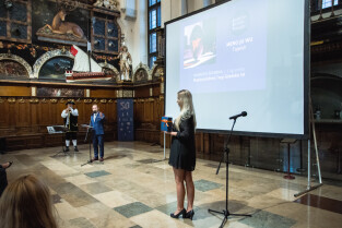 Gdańsk, Dwór Artusa. Gala wręczenia nagród Amberif Selection. Nagrodę główną wręczała Prezydent Gdańska Aleksandra Dulkiewicz