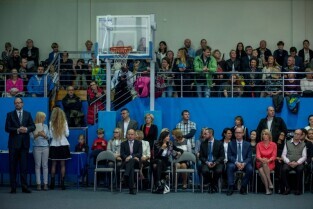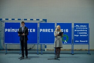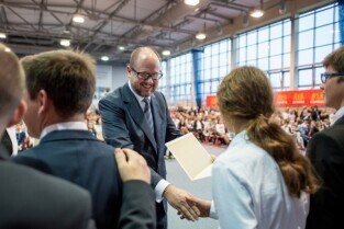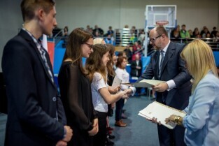 Gala wręczenia dyplomów - stypendiów uczniom szczególnie uzdolnionym. ZSO nr 7 ul. Chałubińskiego 13. Nz Prezydent Gdańska Paweł Adamowicz.