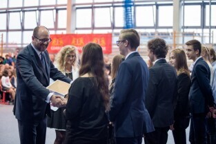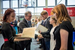 Gala wręczenia dyplomów - stypendiów uczniom szczególnie uzdolnionym. ZSO nr 7 ul. Chałubińskiego 13. Nz Bogdan Oleszek, przewodniczącego Rady Miasta Gdańska.