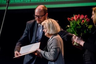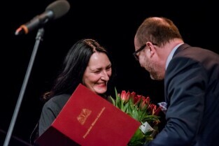 Gdańsk, Teatr Wybrzeże. Gala z okazji Międzynarodowego Dnia Teatru połączona z wręczeniem Nagród Teatralnych Marszałka Województwa Pomorskiego oraz Nagród Teatralnych Miasta Gdańska za rok 2016. Nz Joanna Tomasik-Gierczak – za całokształt pracy artystycznej