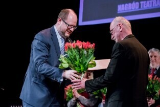Gdańsk, Teatr Wybrzeże. Gala z okazji Międzynarodowego Dnia Teatru połączona z wręczeniem Nagród Teatralnych Marszałka Województwa Pomorskiego oraz Nagród Teatralnych Miasta Gdańska za rok 2016. Nz Mirosław Kaczmarek