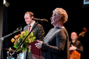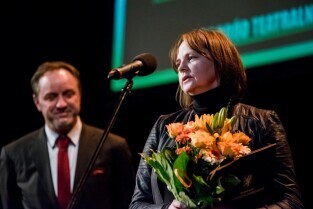 Gdańsk, Teatr Wybrzeże. Gala z okazji Międzynarodowego Dnia Teatru połączona z wręczeniem Nagród Teatralnych Marszałka Województwa Pomorskiego oraz Nagród Teatralnych Miasta Gdańska za rok 2016. Nz Dorota Anna Dąbek