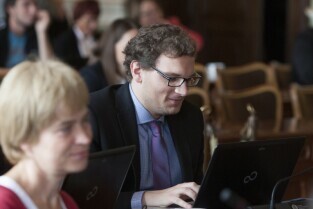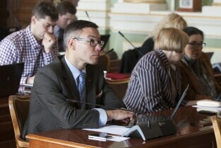 Sesja Rady Miasta Gdańska poświęcona Strategii Rozwoju Gdańska 2030 Plus. Gdańsk, Nowy Ratusz. Nz. Radny Miasta Gdańska Przemysław Ryś