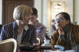 Sesja Rady Miasta Gdańska poświęcona Strategii Rozwoju Gdańska 2030 Plus. Gdańsk, Nowy Ratusz. Nz. od lewej Radne Miasta Gdańska Maria Małkowska i Małgorzata Chmiel