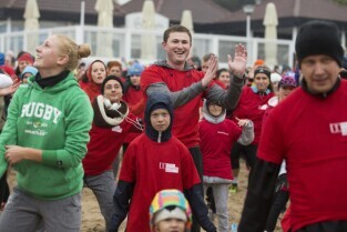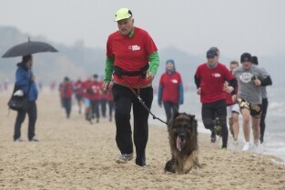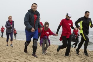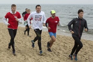 Plaża przy molo w Brzeźnie. Impreza sportowa "Gdańsk Biega 2015". Nz. Minister Sportu i Turystyki Adam Korol