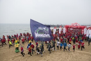 Plaża przy molo w Brzeźnie. Impreza sportowa "Gdańsk Biega 2015"