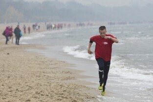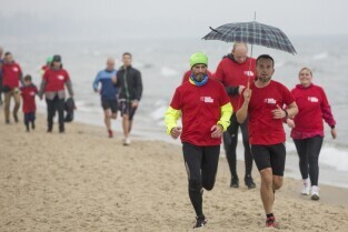 Plaża przy molo w Brzeźnie. Impreza sportowa "Gdańsk Biega 2015". Nz. Z-ca Prezydenta Gdańska Piotr Grzelak