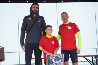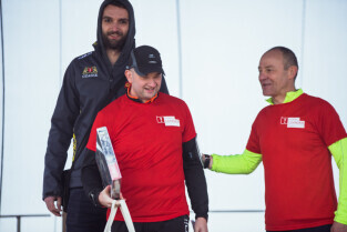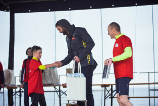 Gdańsk Brzeźno. Impreza "Gdańsk Biega". Nz. Mateusz Mika i Dyrektor GOS Leszek Paszkowski