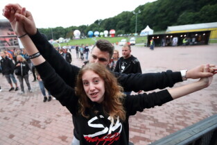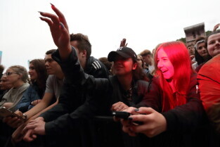 Gdańsk. Plac Zebrań Ludowych. Gdańsk Dźwiga Muzę. Nz. Koncert "Zeus".