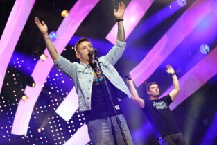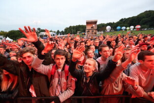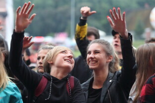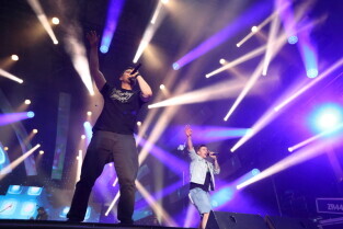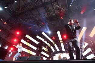Gdańsk. Plac Zebrań Ludowych. Gdańsk Dźwiga Muzę. Nz. Koncert "Bonson".