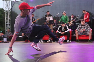 Gdańsk. Plac Zebrań Ludowych. Gdańsk Dźwiga Muzę. Nz. Finał Breakdance.