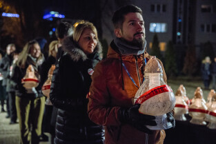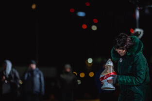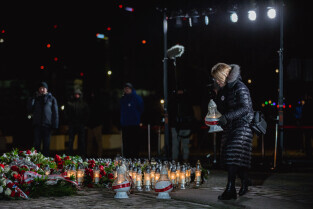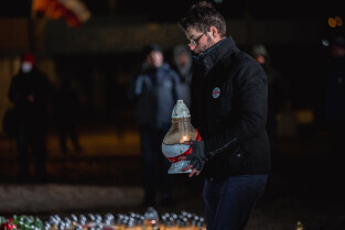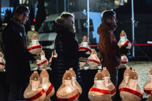 Gdańsk, Plac Solidarności. Gdańsk Pamięta 51 Rocznica Rewolty Grudniowej na Pomorzu. Odczytano Apel Poległych i zapalono 43 znicze pamięci