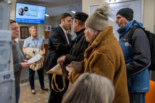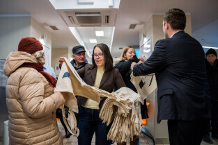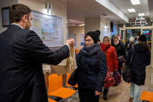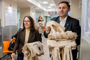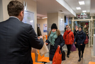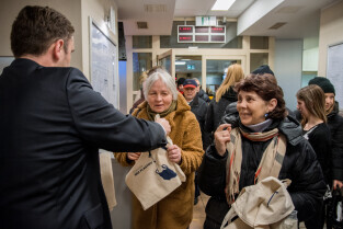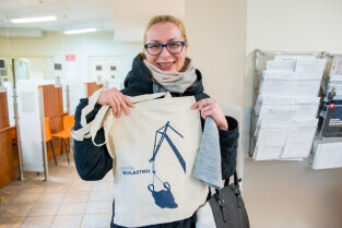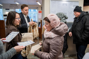 Gdańsk, ul. Nowe Ogrody. Gdańsk bez plastiku - rozdawanie toreb ekologicznych w UMG. Torby rozdawali urzędnicy, radni i wiceprezydent Piotr Borawski