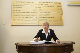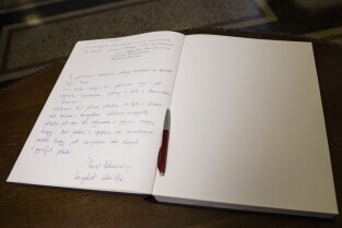 Gdańsk, Nowy Ratusz. Księga kondolencyjna wyłożona w celu uczczenia ofiar zamachów w Paryżu